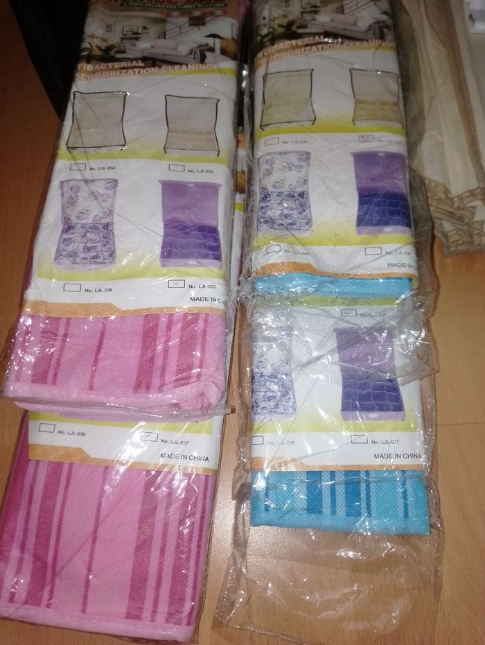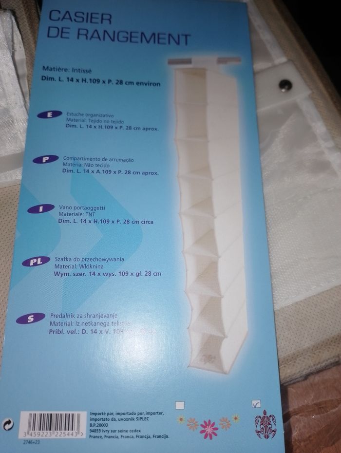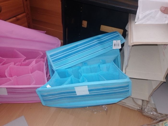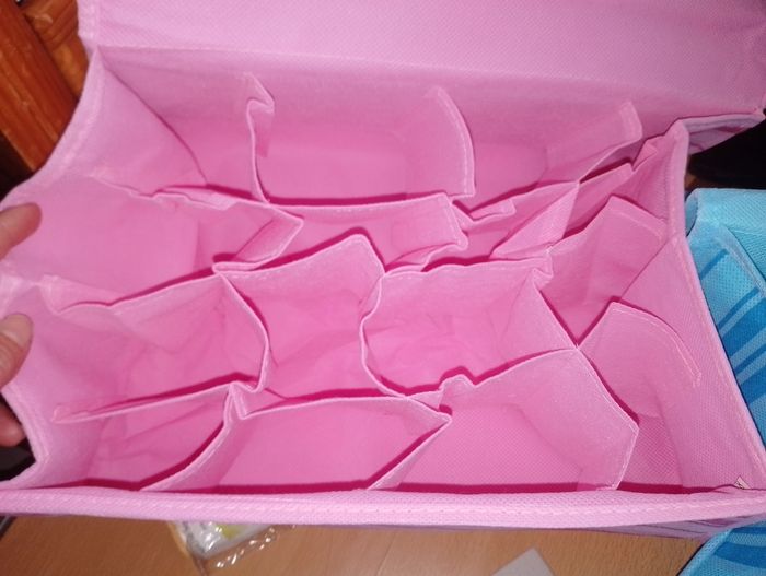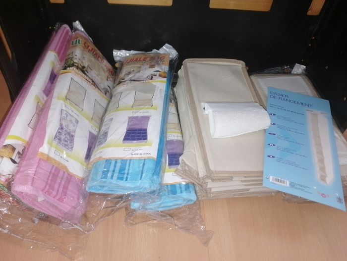 Boite casier de rangement neuf 12 euro pièce casiers rangement avec compartiment jamais servi avec emballage pour y ranger sous vêtements ou autres... Casier en suspension 4 boîtes à cases neuf * 2 roses : 16 cases 33x26 hauteur 10 cm * 2 bleus : 12 cases 33x20 hauteur 10 cm 2 de dispo dont 1 en TBE * Suspension 8 cases L.14xH.109xP.28 cm en matiere intissé neuf pour y mettre chaussures, vêtements
