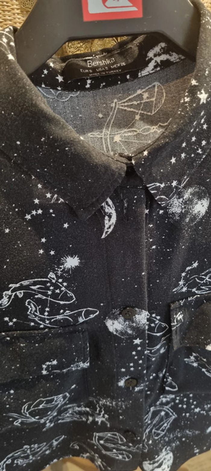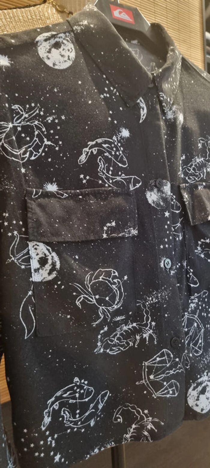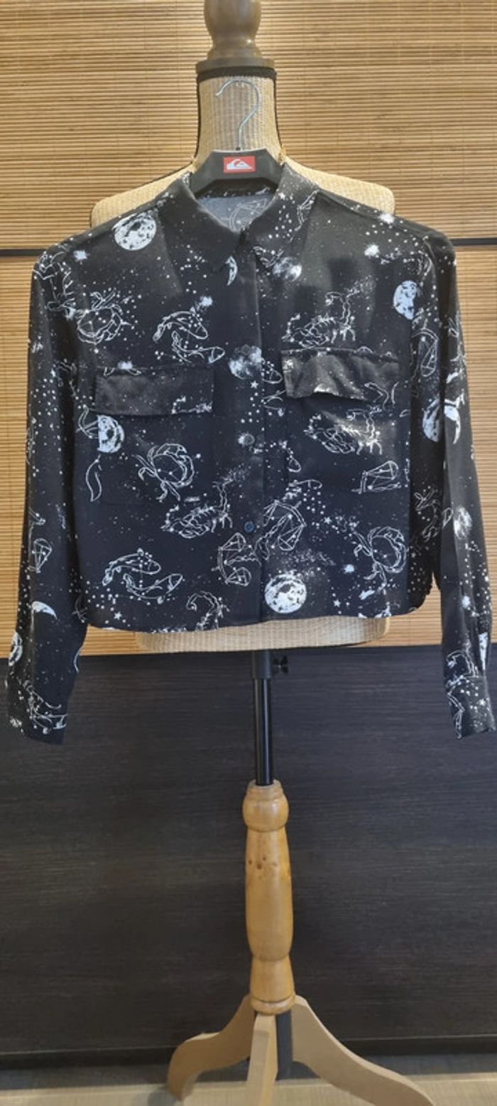 Chemise courte Bershka Taille S Noire et motifs blancs Signes astrologique Dimensions sur photos Très bon état