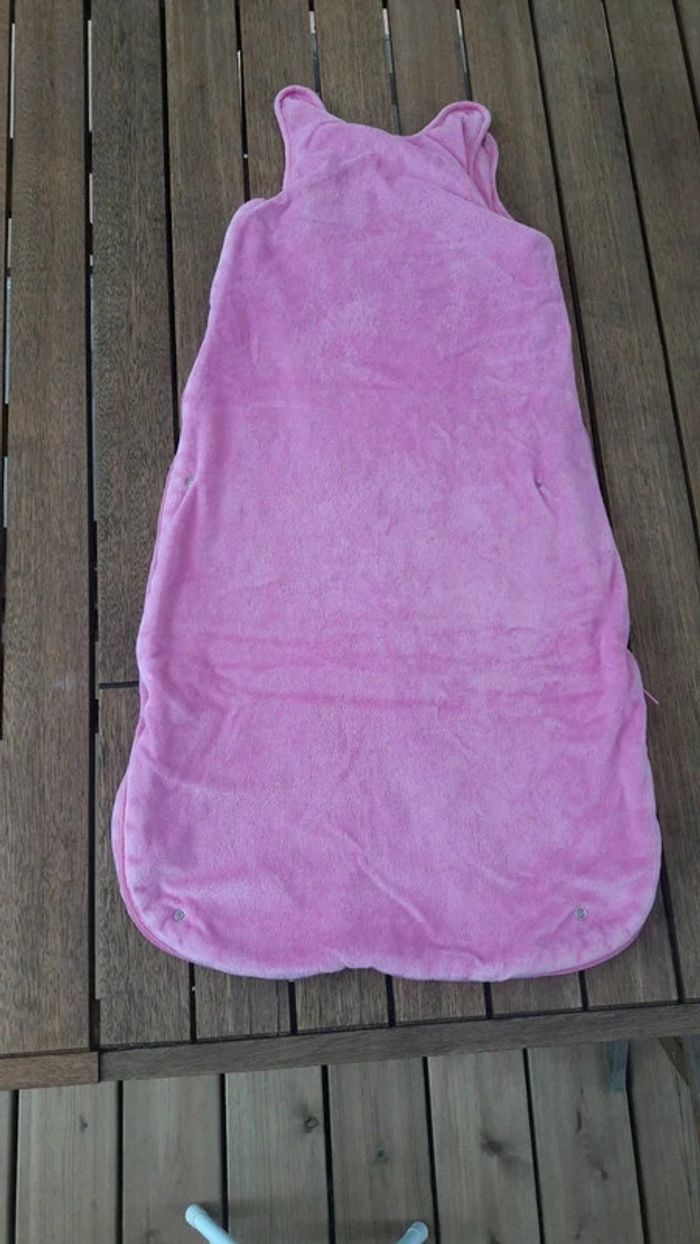 Turbulette 6 mois et + Convient pour l'hiver Fermeture éclaire et boutons pression Les boutons pression permettent de réduire la turbulette afin qu'elle soit évolutive. Un bouton pression est décousu (voir photo) mais ne gêne en rien pour l'attacher. Non tâchée Longueur de la turbulette : 82 cm