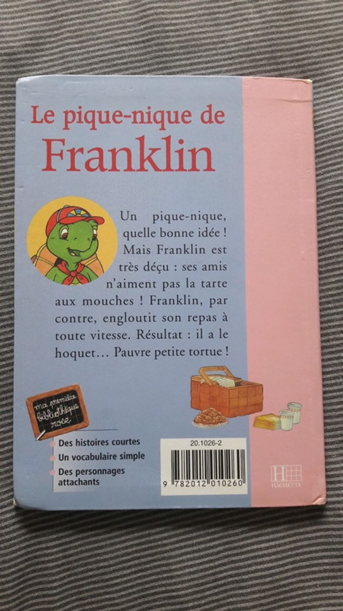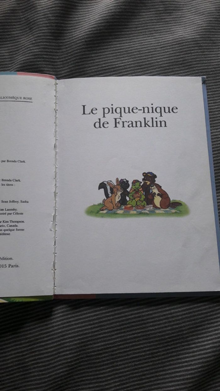 Le pique-nique de Franklin Ma 1ere bibliothèque rose 62 pages 1 page au début du livre se décolle un peu (voir photo) Les coins sont légèrement écornés Autrement aucune page ne se décolle, ni n'est déchirée