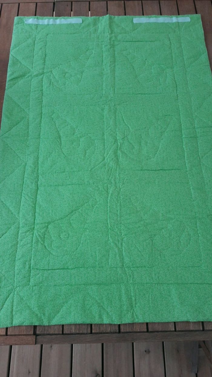 Peut servir de dessus de lit pour un lit de bébé ou alors peut être accroché au mur pour décoration. Tout fait à la main ! Dimensions : 122 x 80 cm