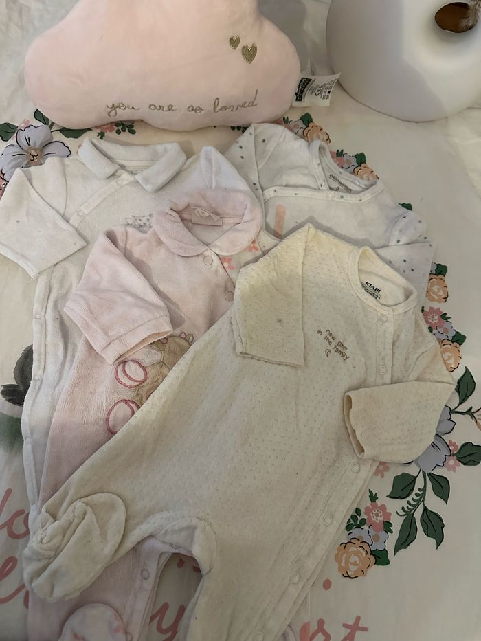 Bonjour ! 🌼 Lot de 4 pyjamas fille en excellent état. Ouverture sur le devant idéal pour les premiers mois. 🌼 Différentes marques : - orchestra - KIABI - noukie ‘s - brioche 🌸 Bébé Fille 🌸 🌺 3 mois 🌺