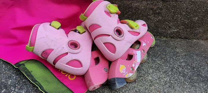 Je mets en vente une paire de rollers évolutifs, de couleur rose. Il manque un frein arrière sur l'un des rollers. Sac de rangement en très bon état Le tout sera à nettoyer même si j'essaierai de faire un 1er nettoyage. Remise en main propre sur Arpajon (91)