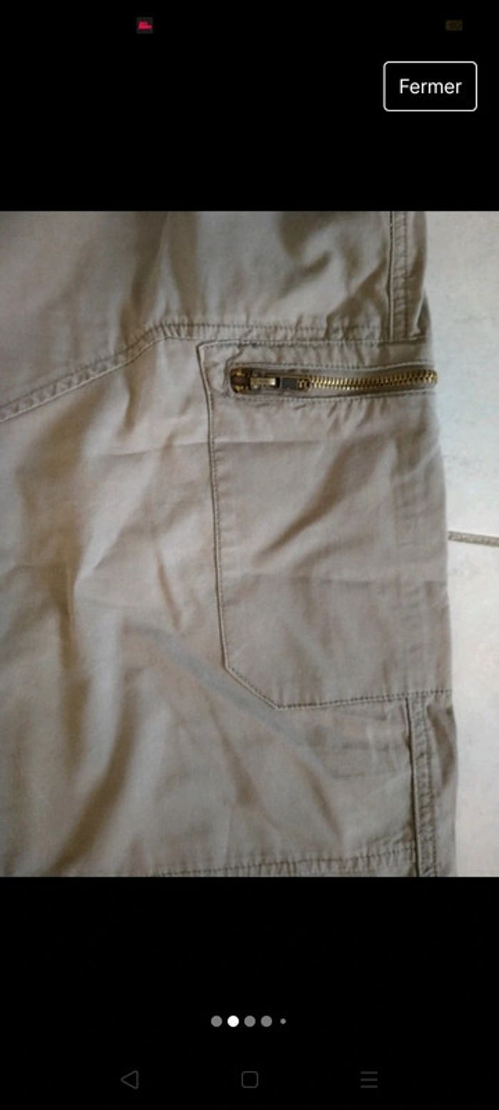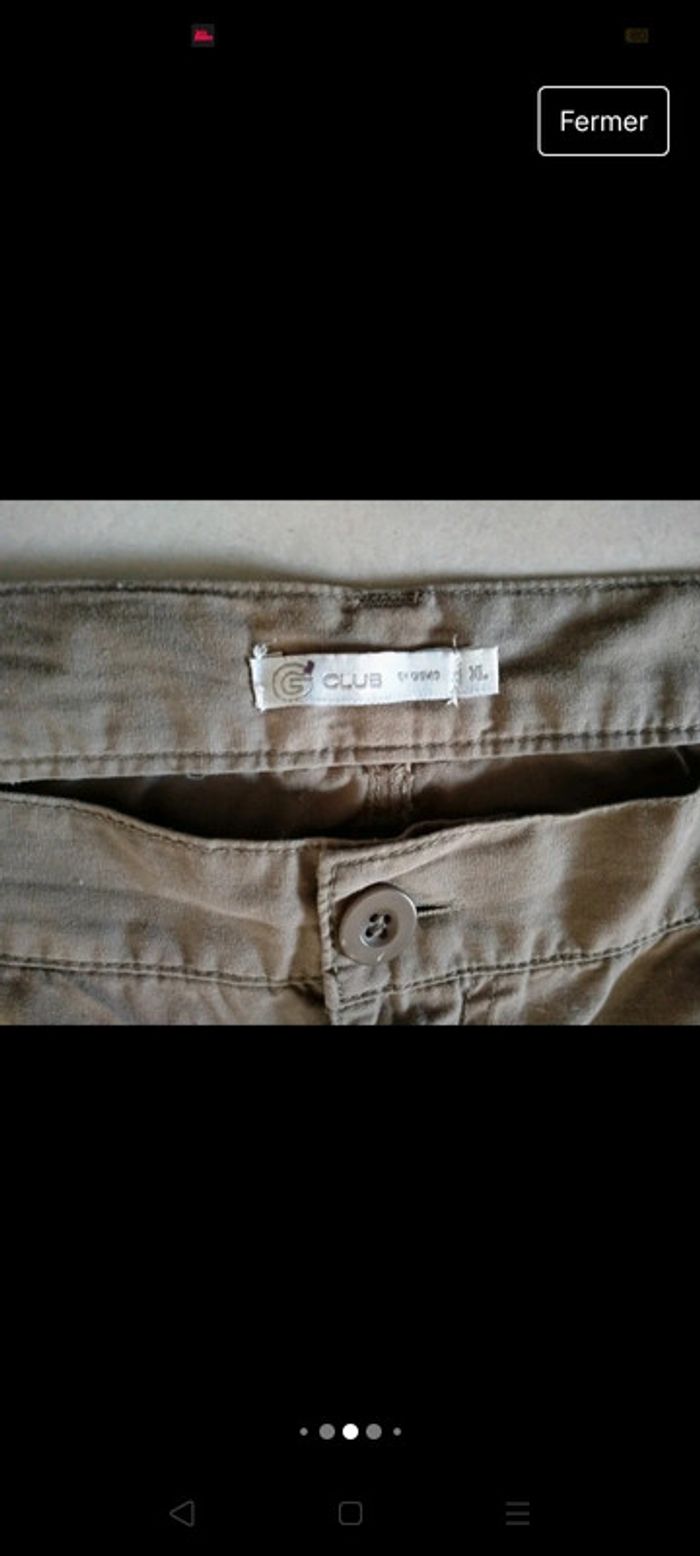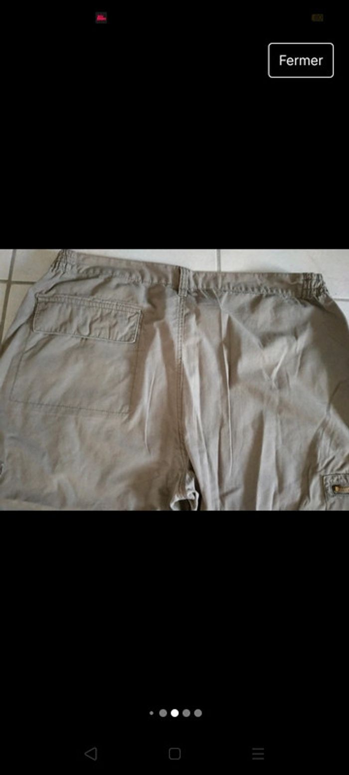 Panta court homme Gemo Taille XL Couleur kaki. 2 poches devant, 1 poche derrière fermée par un bouton pression.  2 poches à fermeture éclaire sur les côtés. Taille élastique. Très bon état. Légèrement bouloché entre les jambes. Voir photo. Maison non fumeur 5 Euros. promo 4 Euros Envoi par mondial Relay Remise en main propre possible sur Beauregard Vendon Riom ou Clermont Ferrand 63. #ptitesev63vetementhomme #pantacourthomme