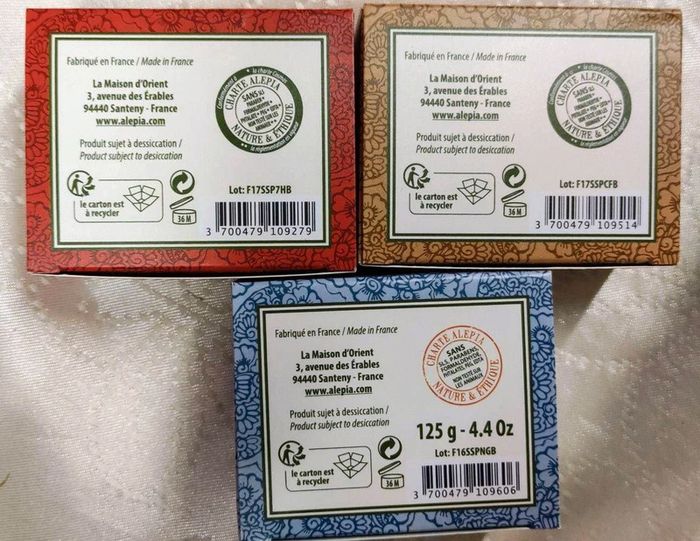 Savon alep neuf. 4.50 un au choix. 13e les 3