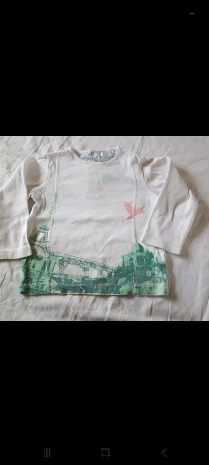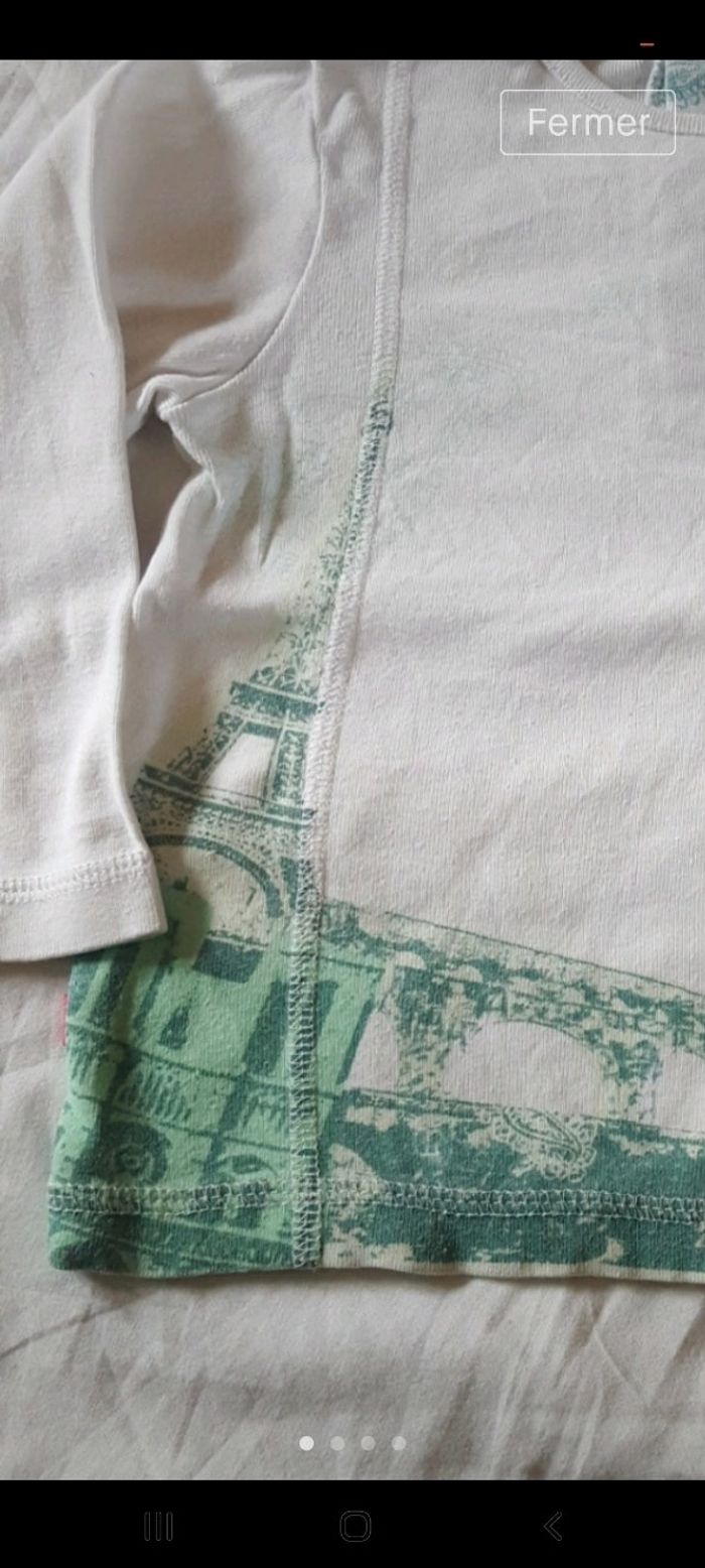 T-shirt manches longues blanc et vert avec décor de Paris : Tour Eiffel ,.... pour fille en 23 mois pour filles . Ce t-shirt à été porté plusieurs fois. #machacha21fille24mois #okaidifille24mois #fille24mois #okaidiétéfille2ans #été2ans #étéfille24mois