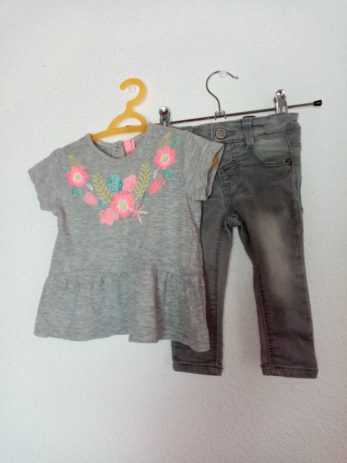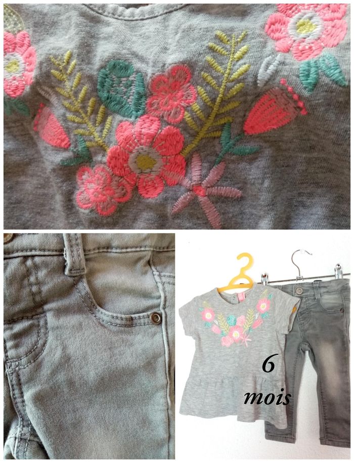 6/9 mois hema ensemble 2 pièces Tee-shirt brodé et jean gris prin été /Excellent état