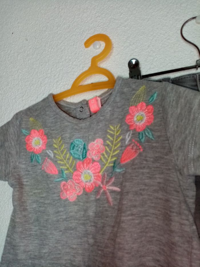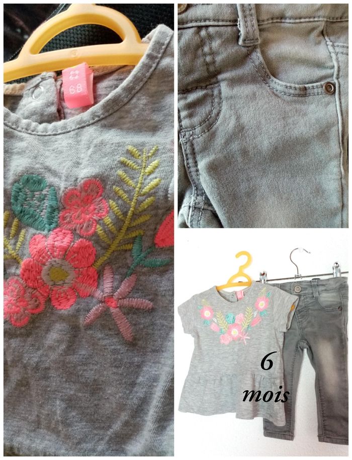 6/9 mois hema ensemble 2 pièces Tee-shirt brodé et jean gris prin été /Excellent état - photo numéro 10