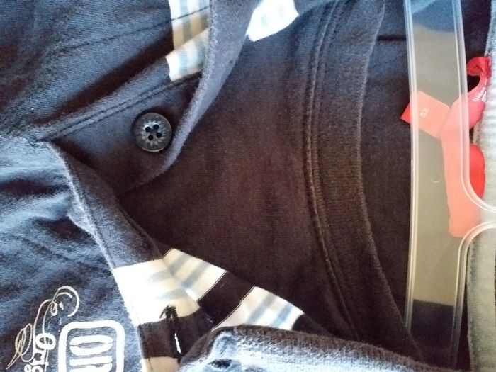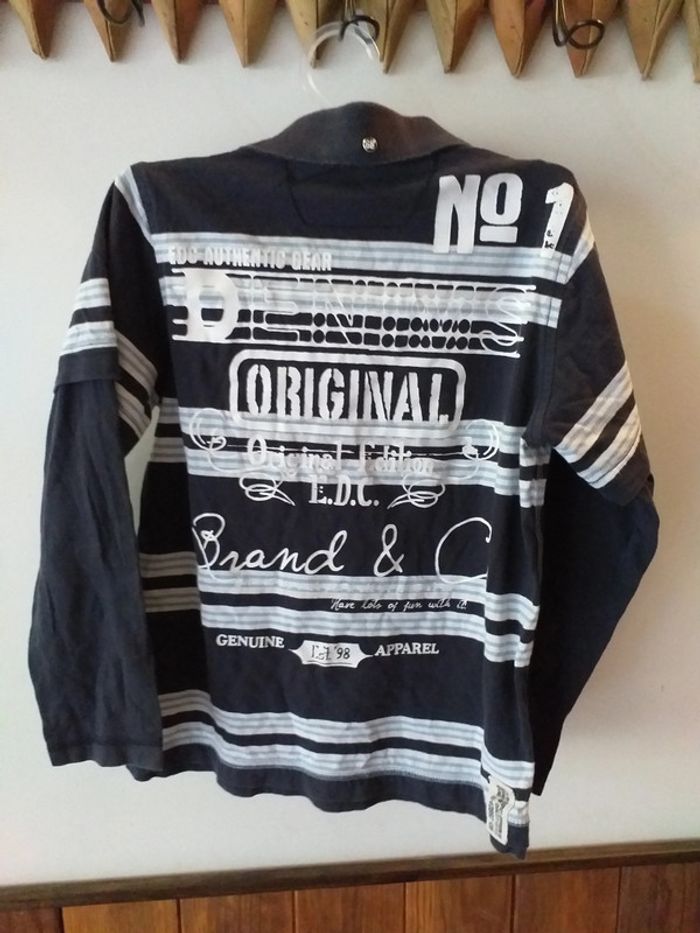 Polo manches longues bleu blanc rayé taille 8 ans effet porter t-shirt au-dessous #bakeco8ansgarçon