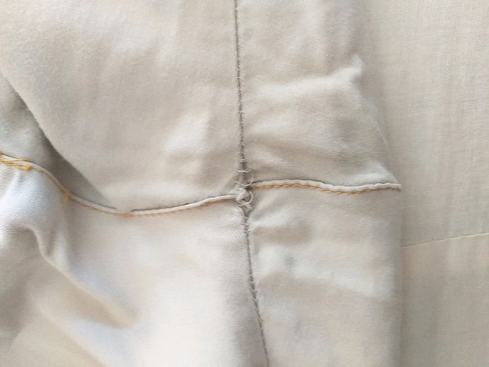 Pantacourt crème avec fermeture éclair en bas décor doré sur une des poche , il y a une petite tache à peine visible voir photo et il faut renforcer la couture à l entre jambe voir photo , T48 elasthanne. #bakecotaille48femme