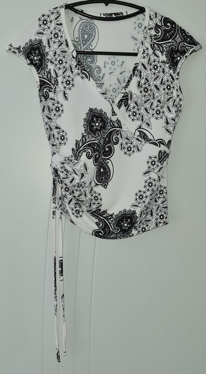 A la vente, en bon état, ce joli petit débardeur blanc à imprimés noirs et pouvant être ajusté. En semaine, cet article peut vous être déposé à l'Espace Européen de l'entreprise, Schiltigheim.