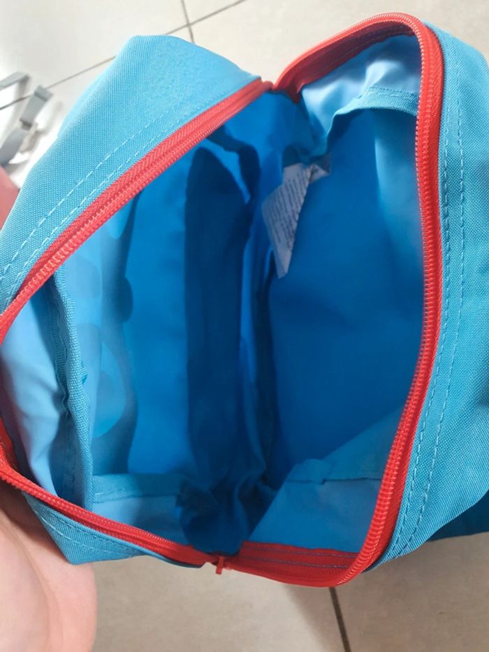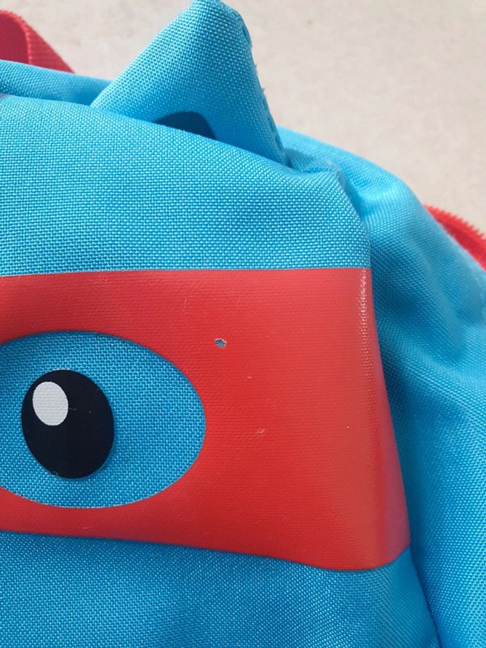 Sac à dos enfant bleu, auchan. Une petite tache en dessous (voir photo) mais peut-être que ça partira à la machine et petit défaut devant sur le rouge (voir photo). #sac #sacados #sacenfant #auchan