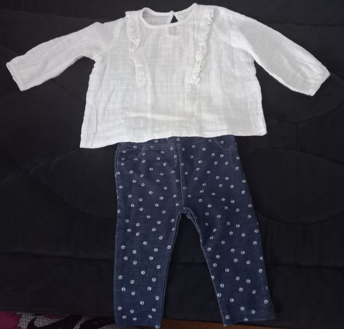 Ensemble composé d'une tunique crème PRIMARK de 9/12 mois, bouton derrière le cou + legging 12 mois CADET ROUSSELLE