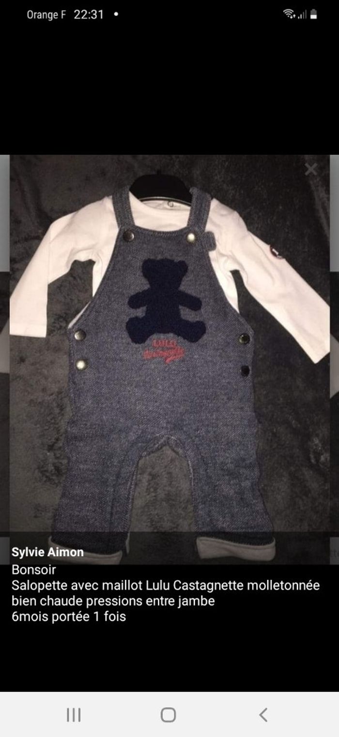 Ensemble Lulu castagnette 6mois salopette bien épaisse