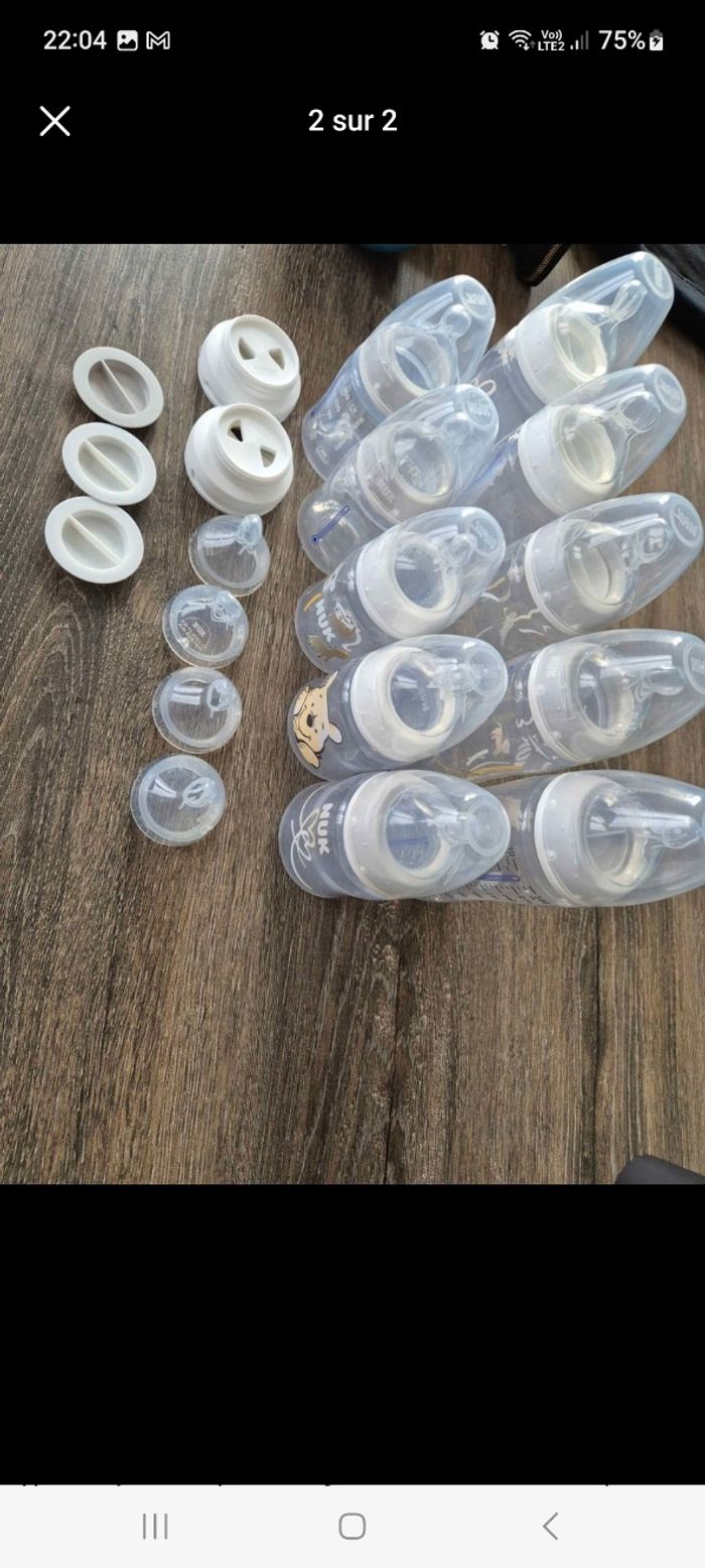 Vends 10 biberons neufs 5 petits et 5 grands ( seulement 1 petit d'utilisé car ne convient pas à mon bébé) 4 tétines en plus et 3z stop lait Acheté 130 à Orchestra il y a 1 mois.