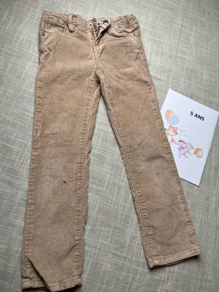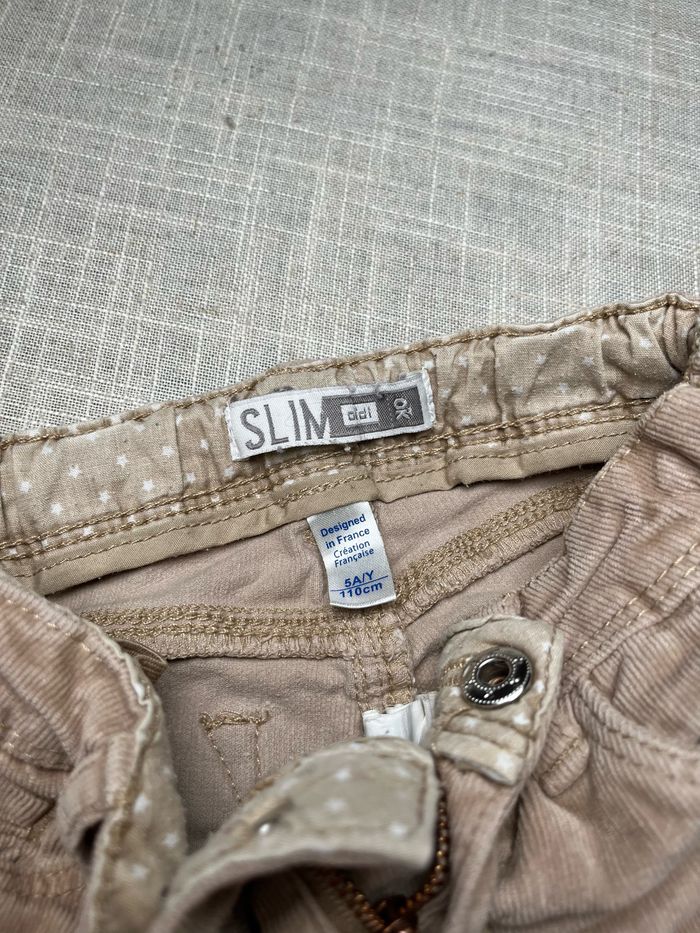 Pantalon de la marque Okaïdi Taille 5 ans - 110 cm Réglable à la taille par des élastiques. Deux taches à signaler au niveau des genoux (photos) Groupez vos achat pour profiter des remises activées sur les lots et réduire vos frais de port. #chrisbc17fille5ans