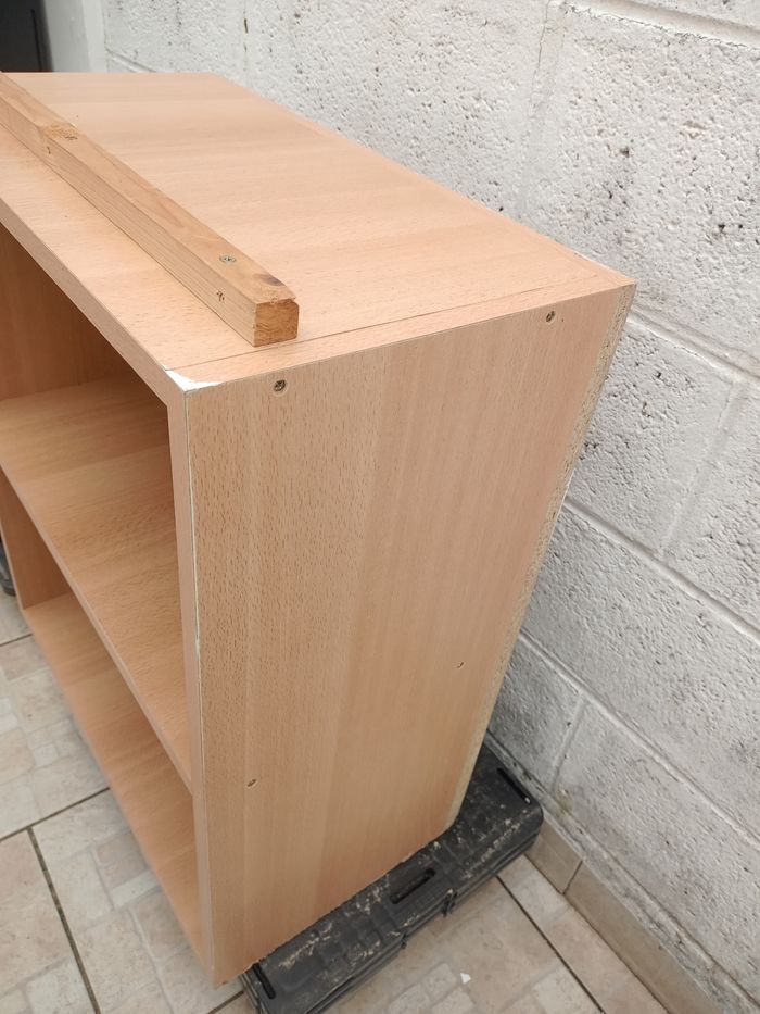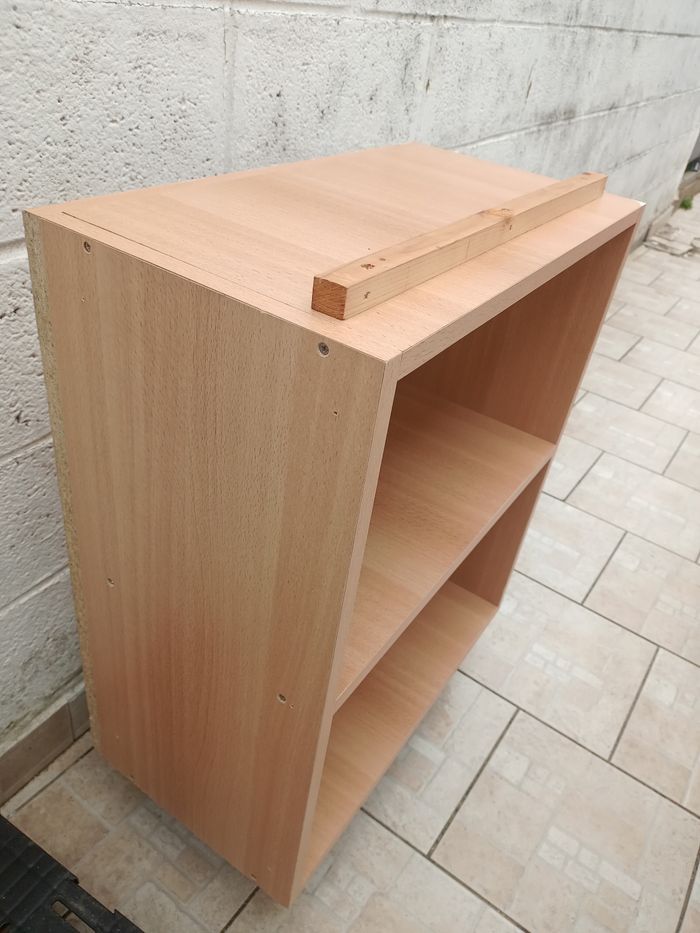 Meuble double étagère avec trou dans le fond, barre sur le dessus 60x69,5cn (72cm vec le rebord) profondeur 32,5cm 50euro Différentes meubles de cuisine en l'état Pieds à visser selon la hauteur voulu pour chacun des pieds Visible sur Merville 59660 .