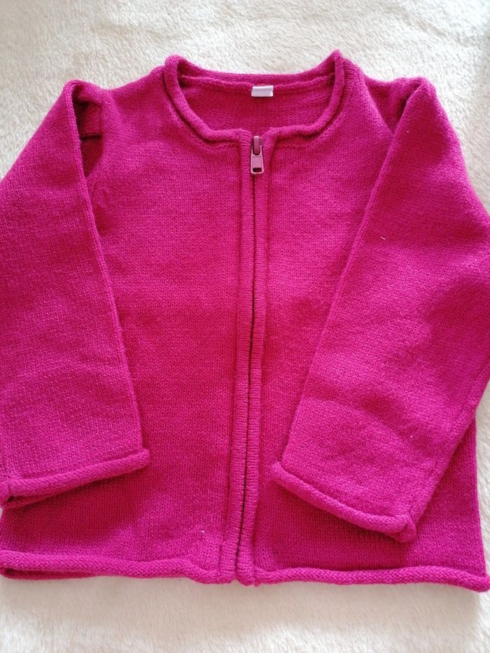 Gilet rose qui se ferme avec une fermeture éclair.