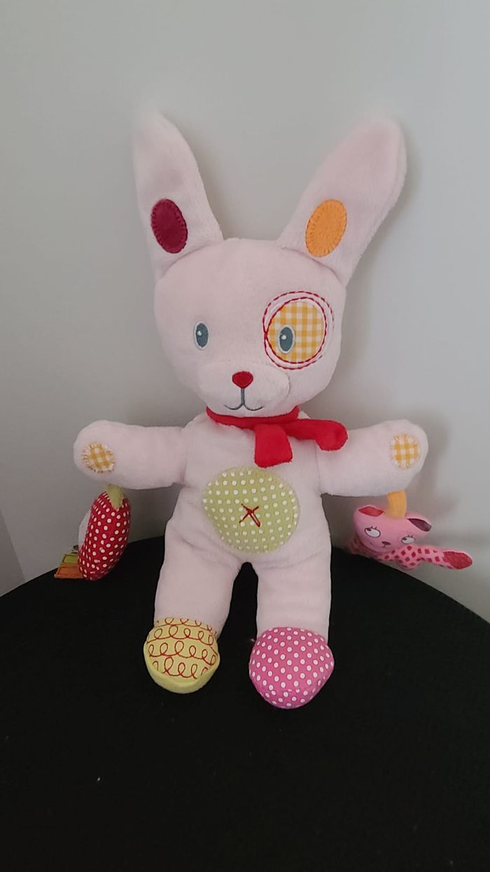 DOUDOU LAPIN ROSE VERT JAUNE ROUGE POIS RAPIÉCÉ NICOTOY 134