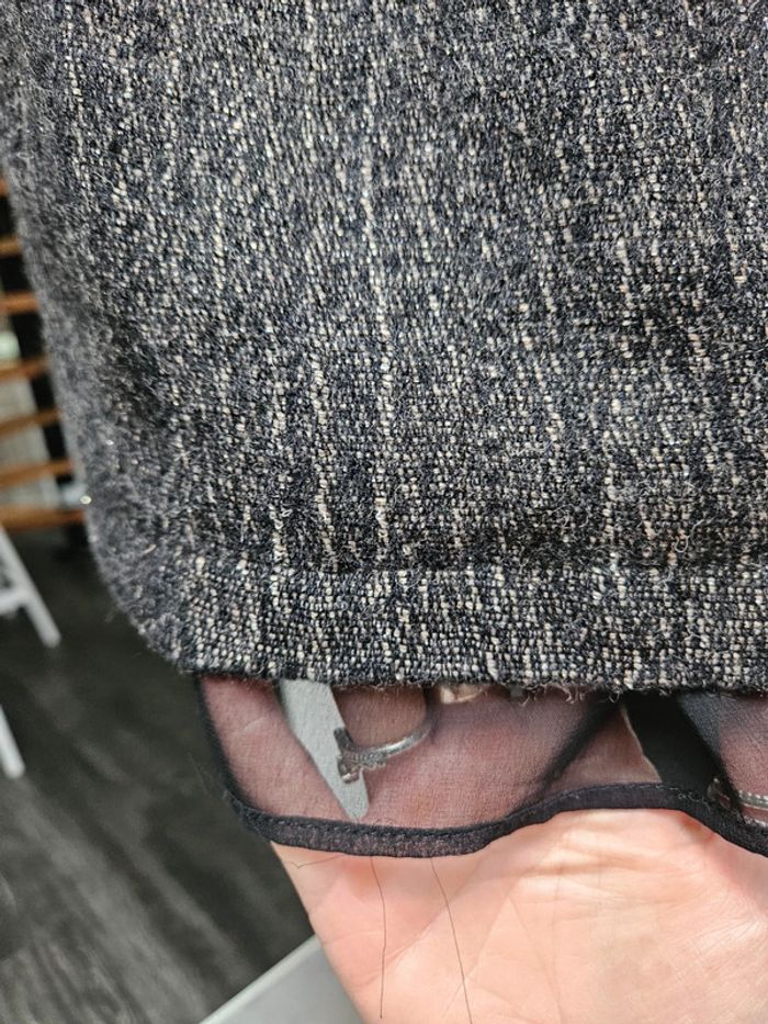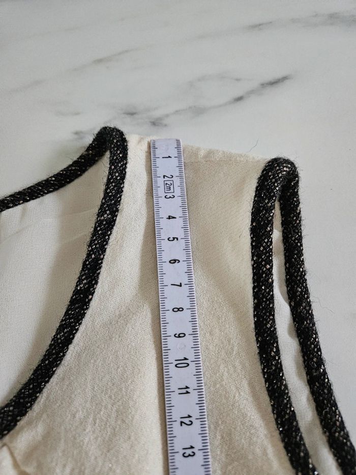 Robe courte à paillettes. Ça ne se voit pas sur les photos mais elle est toute pailletées argentée. Portée en bon état. Les dimensions se trouvent sur les photos