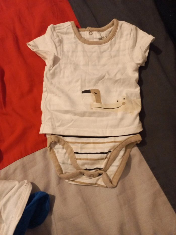 4 Bodies manches courtes et un bodie avec t-shirt manches courtes accroché #lenkekepetitcoeur3mois