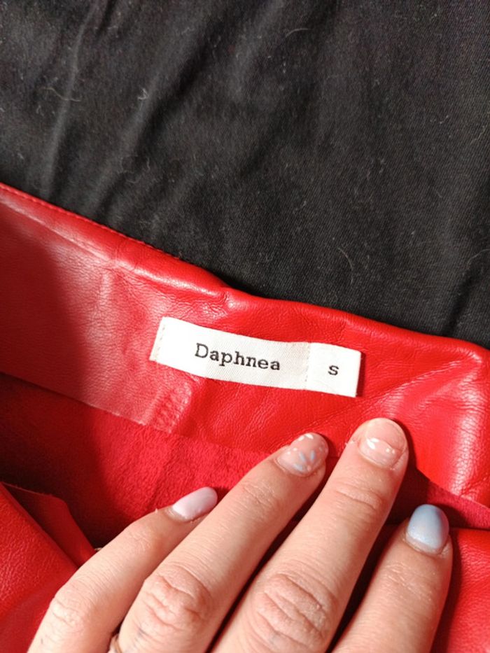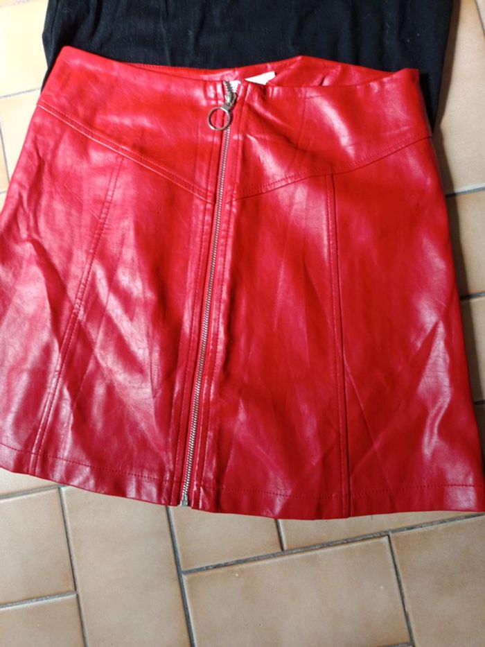 Mini jupe simili rouge + tee shirt accordé taille S le tee shirt et en taille M mais équivaut a un S