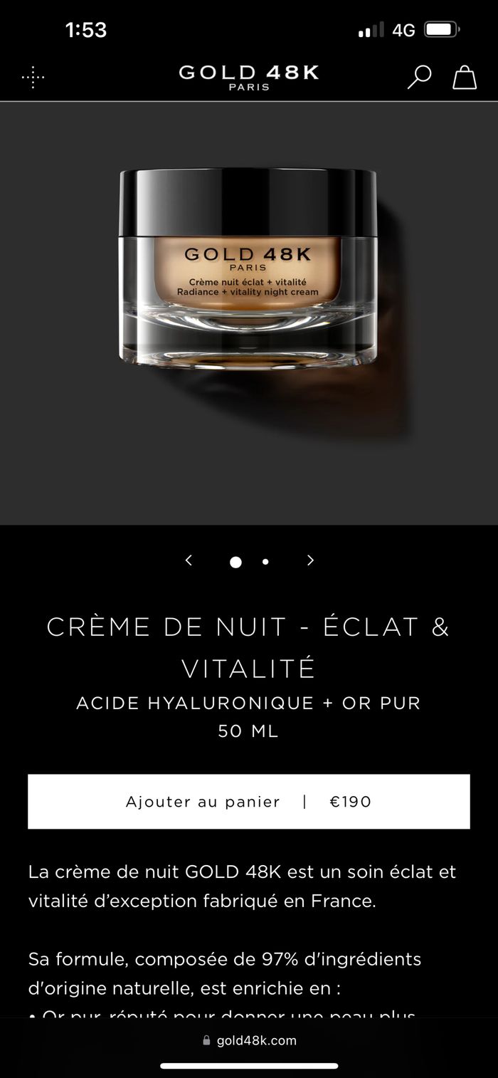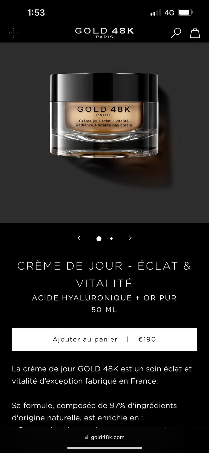 Crème nuit+jour éclat Vitalité+ Radiance Acide hyaluronique+or pur Achetés 380€