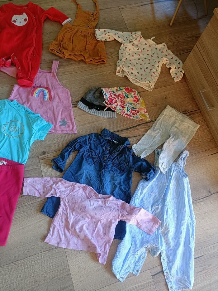 Lot vêtements 9 mois fille Très bon état 1 pyjama 2 bodies 1 bonnet 2 pantalons 3 hautes manches longues 2 robes 1 combi short côtelé 1 combi longue été 1 teeshirt