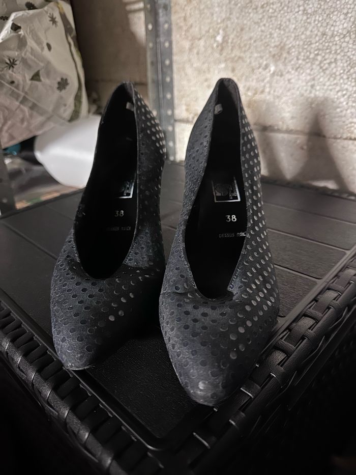 Chaussures à talons, marque chaussure de france, voir sur photo la partie du talons éraflures, se voit pas de loin, la semelle intérieur est en cuir en excellent état, taille 38. Nettoyé avant envoi, selon appréciation reste en très bon état/bon état #chaussureskay57070 #chaussuredefrance #chaussuretalon