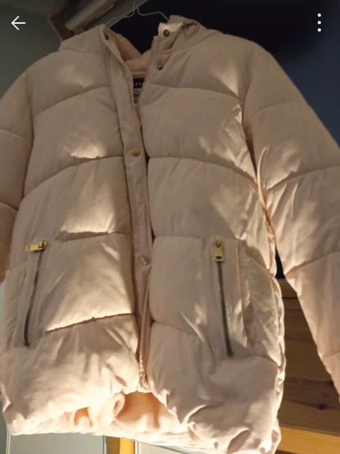 Manteau rose très clair qui a très peu servi avec 2 poches. Le manteau taille petit, sa irai pour une fille de 10ans.