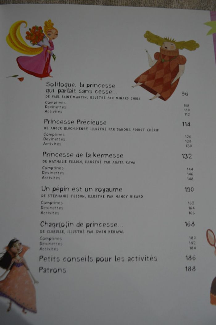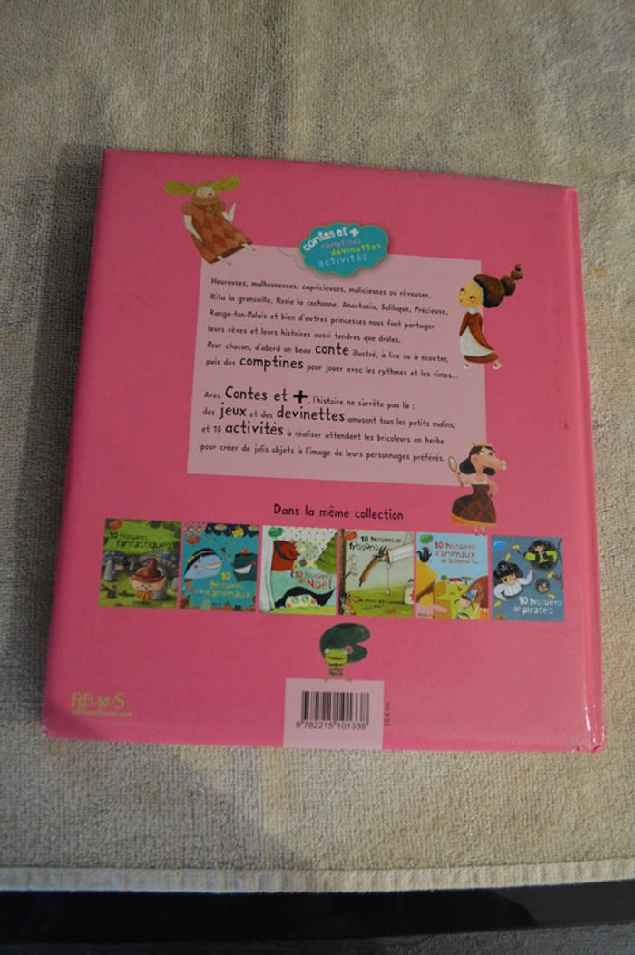 10 histoires de princesses Fleurus Résumé : Heureuses, malheureuses, capricieuses, malicieuses ou rêveuses, Rita la grenouille, Rosie la cochonne, Anastasia, Soliloque, Précieuse, Range-ton-Palais et bien d'autres princesses nous font partager leurs rêves et leurs histoires aussi tendres que drôles. Pour chacun, d'abord un joli conte illustré, à lire ou à écouter, puis des comptines pour jouer avec les rythmes et les rimes... Avec Contes et +, l'histoire ne s'arrête pas là : pour les petits malins, des jeux et des devinettes, et pour les bricoleurs en herbe, 10 activités à réaliser pour retrouver l'univers de ces princesses en créant des objets à leur image : un carnet à secrets, un miroir, des marionnettes, des maracas... Livre en bon état #jeuninie48