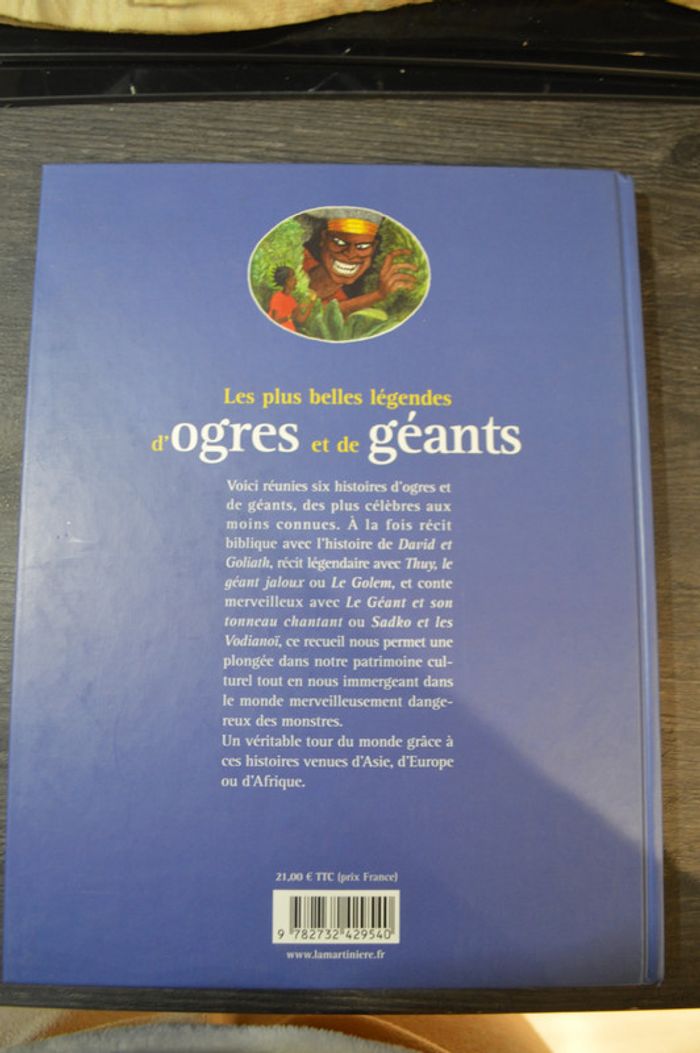 Livre Les plus belles légendes d'ogres et de géants Résumé : Réunit six histoires venues du monde entier mettant en scène des ogres ou des géants : le géant aux cheveux d'or irlandais, Thuy le géant jaloux vietnamien, Goliath luttant contre David, les Vodianoï russes et Sadko, le Golem d'Europe centrale, le Géant et son tonneau d'Afrique. 140 pages Livre en très bon état, livre très joli #jeuninie48