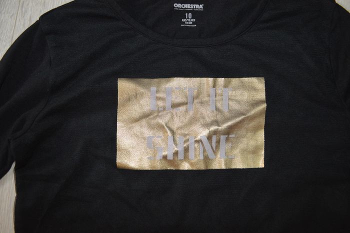 Tee shirt manches longues noir Orchestra 10 ans Inscription sur fond doré "Let It Shine" Tee shirt en bon état, pas de taches, ni trous #10ansfilleninie48