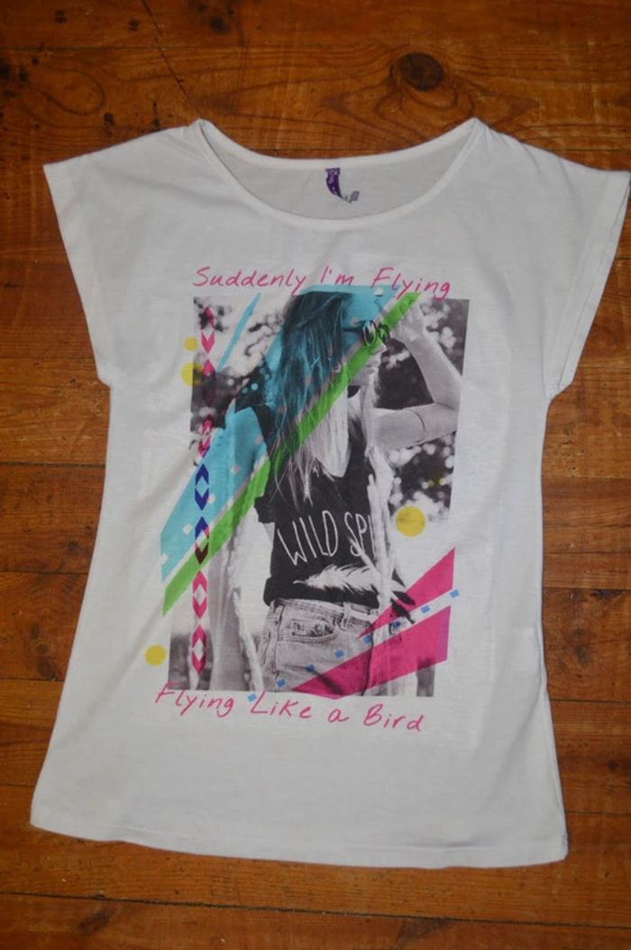 Tee shirt manches courtes Gémo 16 ans Sur le devant dessin d'une femme Tee shirt en bon état, pas de taches, ni trous #16ansfilleninie48