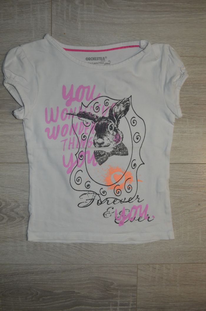 Tee shirt manches courtes lapin blanc Orchestra 5 ans Tee shirt en bon état, pas de taches, ni trous #5ansfilleninie48