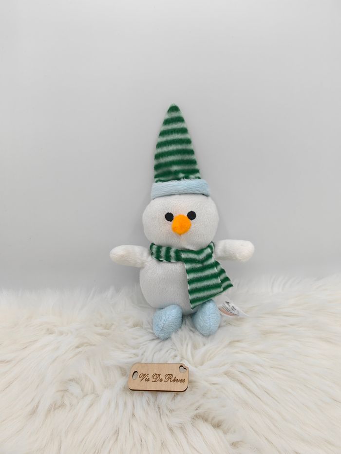 Doudou peluche Bonhomme de neige blanc et vert rayé