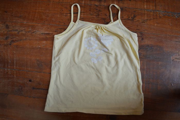 Lot de 2 débardeurs fines bretelles Vertbaudet 8 ans 1- gris motif étoile 1- jaune motif fleurs Débardeur en bon état, pas de taches, ni trous #8ansfilleninie48
