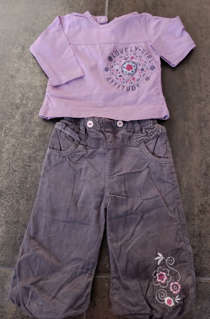 Vend cet ensemble fille taille 6 mois. Pantalon Gémo et tee-shirt manches longues in extenso.
