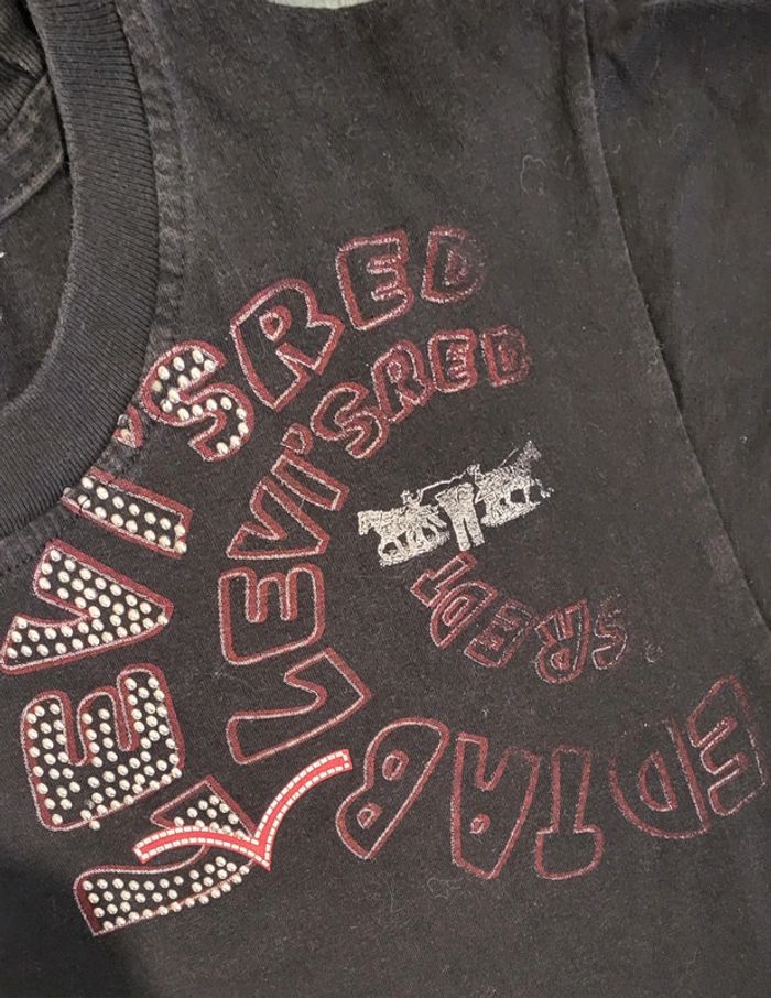 Tee-shirt Levi's noir rouge et strass - Taille L - photo numéro 2