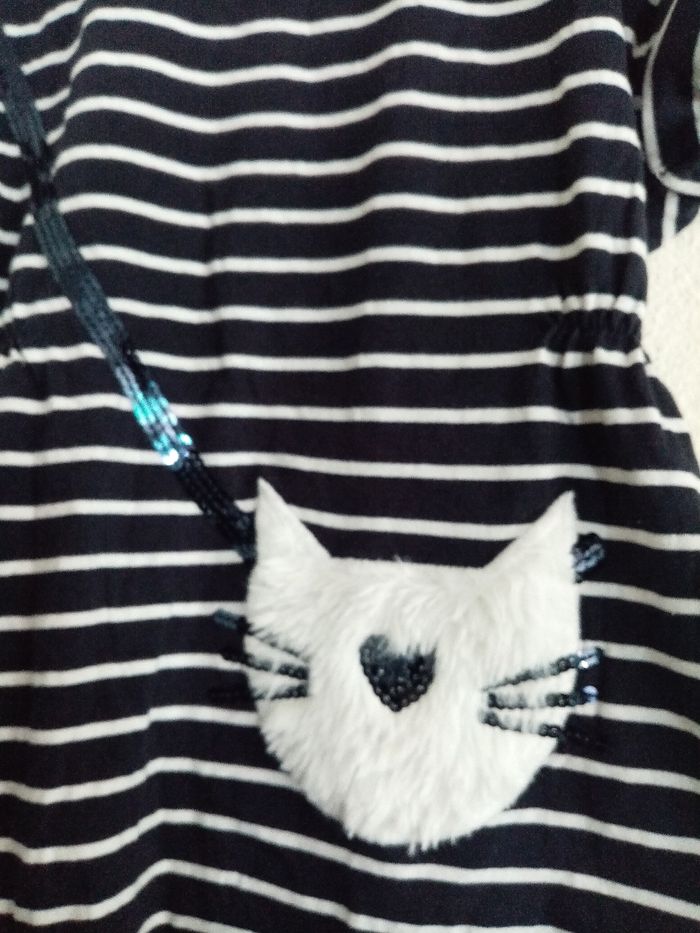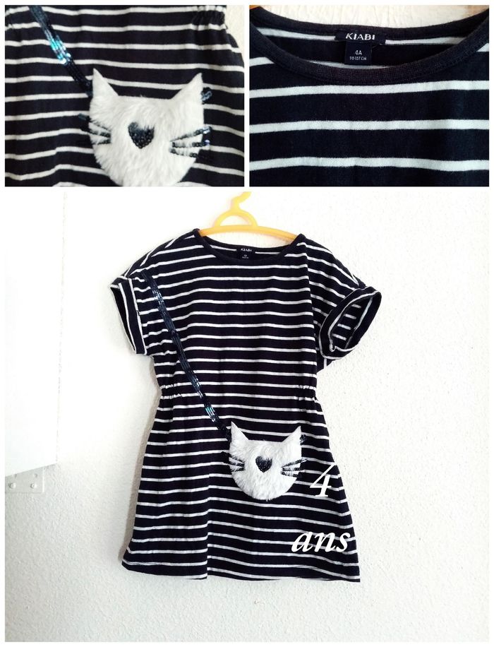 4 ans kiabi robe bleu a rayures blanches "sac petit chat" toutes saisons /Excellent état - photo numéro 8