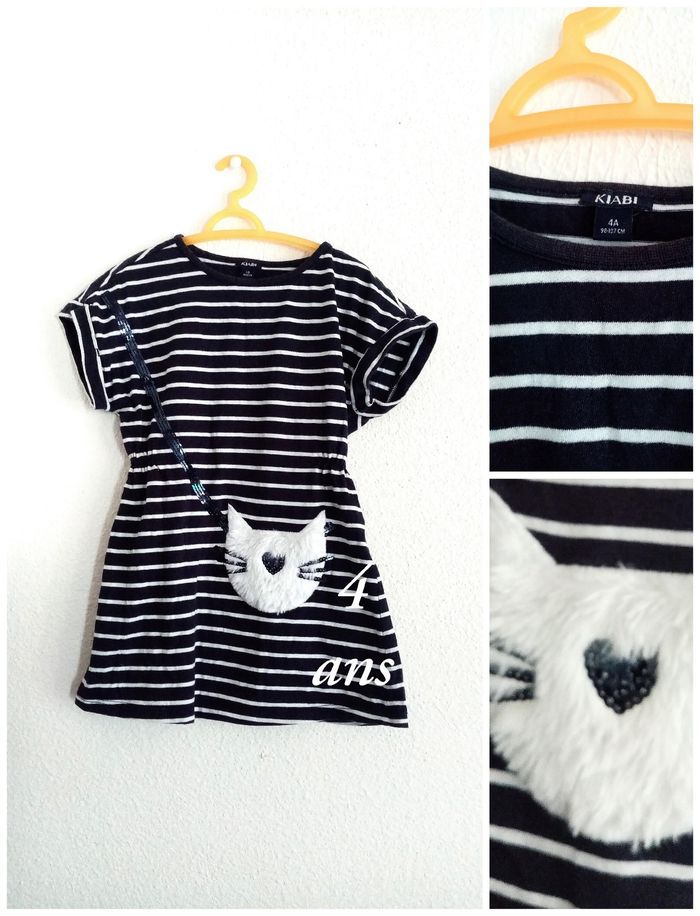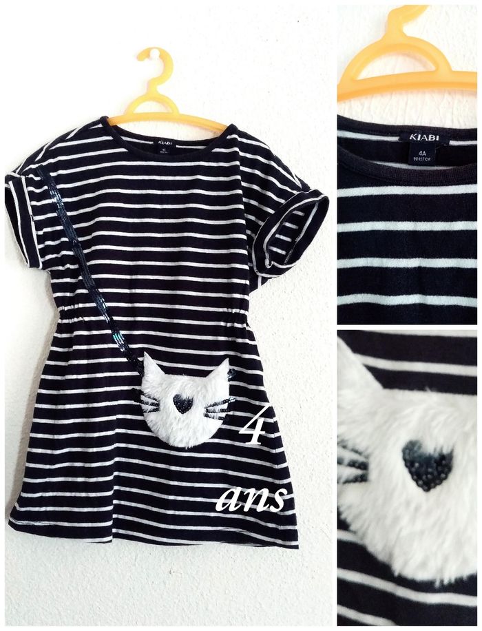 4 ans kiabi robe bleu a rayures blanches "sac petit chat" toutes saisons /Excellent état - photo numéro 7