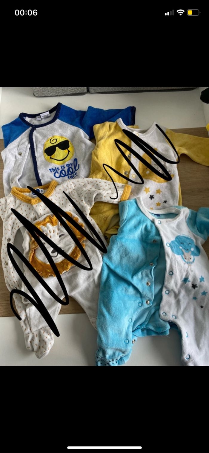 Vend vêtement 1 mois garçon 0,60cts le vêtements Pyjama Bodys
