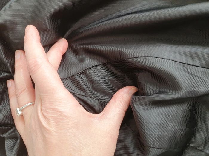 L intérieur de la doublure se déchire légèrement et le côté effet cuir au niveau du col est légèrement usé aussi Le reste est en excellent état