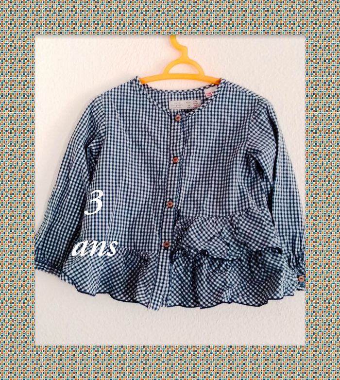2/3 ans zara blouse chemise bleu écossaise a volant toutes saisons /Excellent état - photo numéro 1