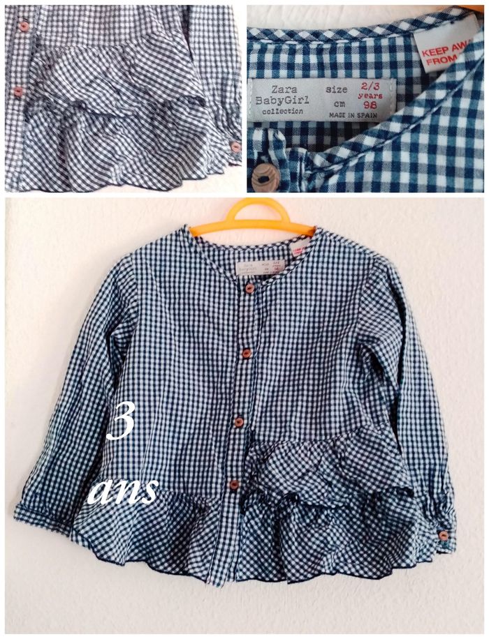 2/3 ans zara blouse chemise bleu écossaise a volant toutes saisons /Excellent état - photo numéro 17