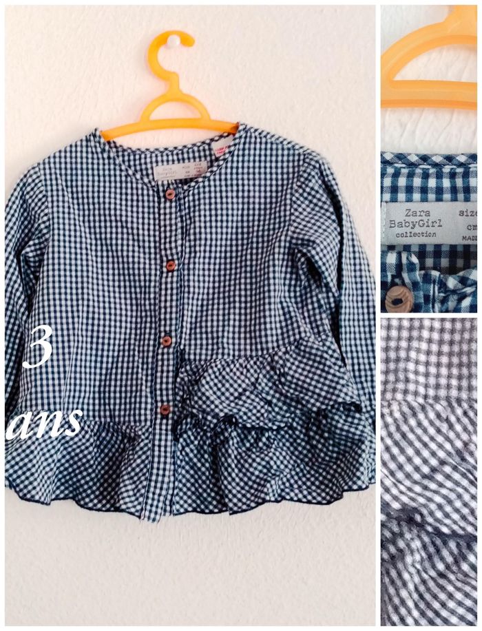 2/3 ans zara blouse chemise bleu écossaise a volant toutes saisons /Excellent état - photo numéro 13