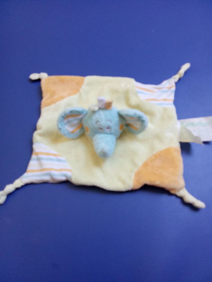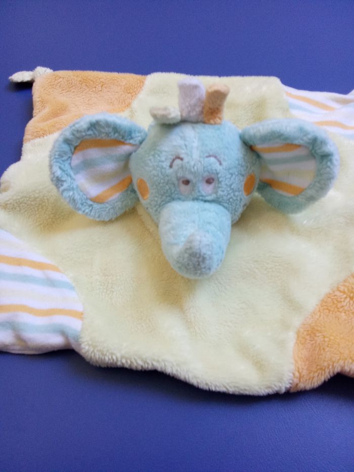Doudou mouchoir tête éléphant bleu, carré jaune, orange marque kimbaloo , 2 étiquettes. Beaucoup d'autres doudous enfant également à vendre ds mon dressing et réduction activée