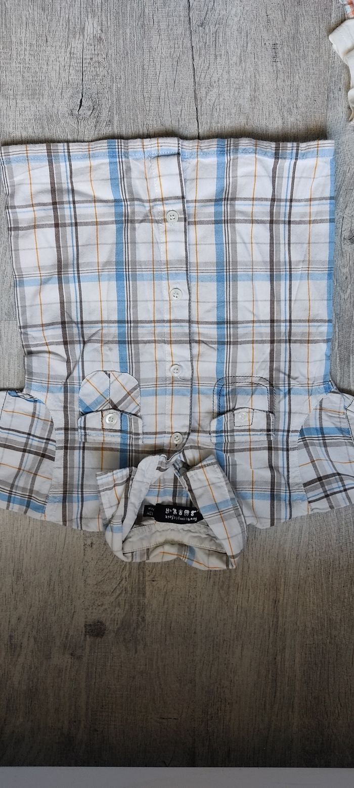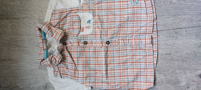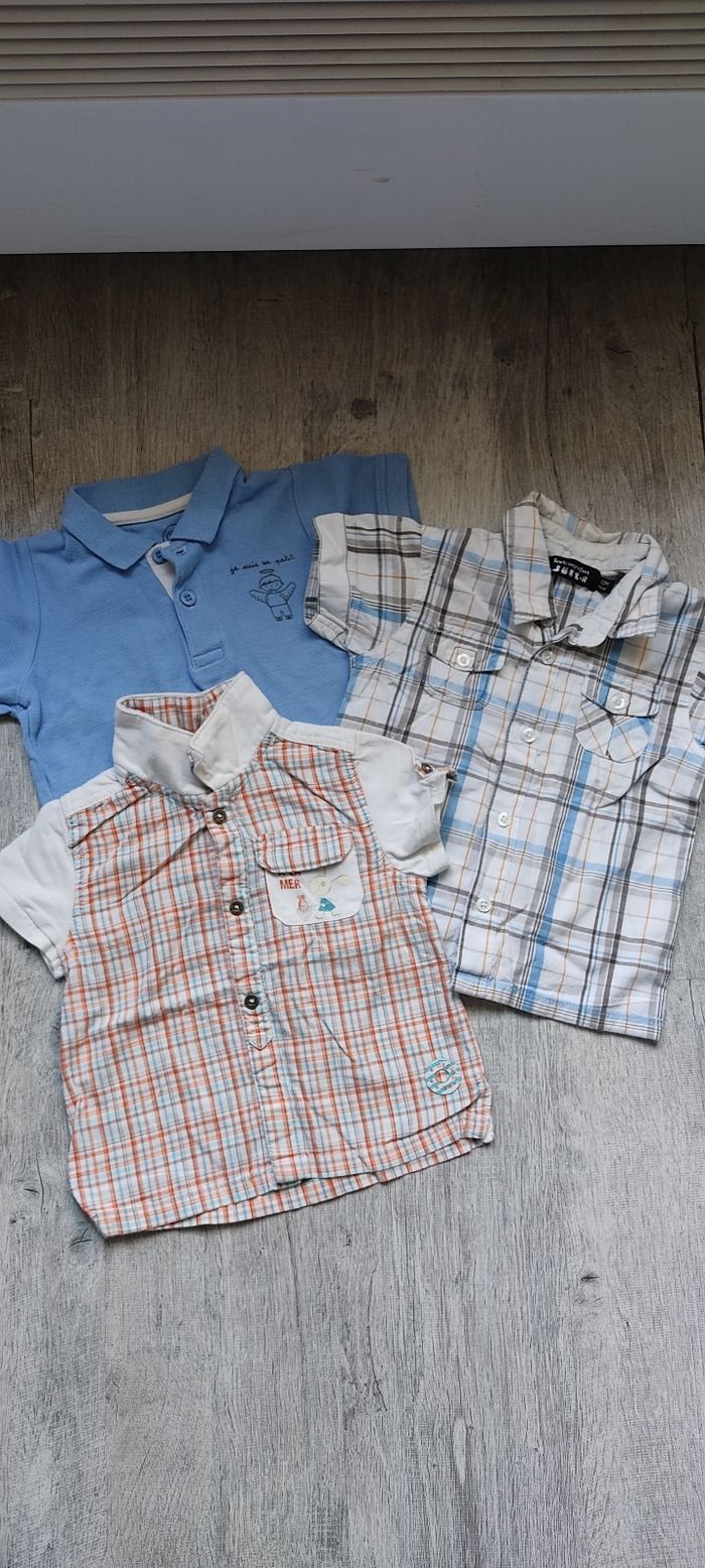 Lot de 3 hauts manches courtes 12 mois comprenant 1 haut orchestra 12 mois 74 cm corail et bleu ciel bouton pression sur tout le devant très bon etat 1 chemisette carreaux bleu ciel tout compte fait 12 mois 74 cm très bon état 1 polo bleu tout compte fait 12 mois 74 cm très bon état Envoi rapide et soigné Réductions actives N'hésitez pas à me contacter 😁