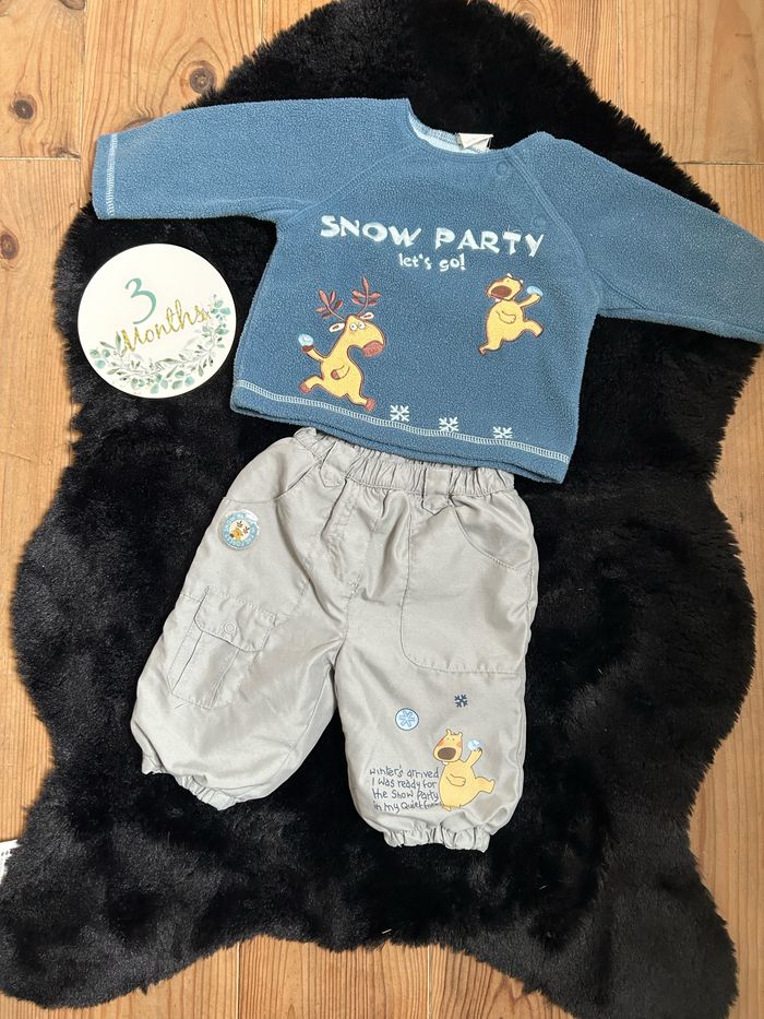 Ensemble 2 pièces hiver Pull polaire bleu et jogging épais marron 3 mois, en parfait état