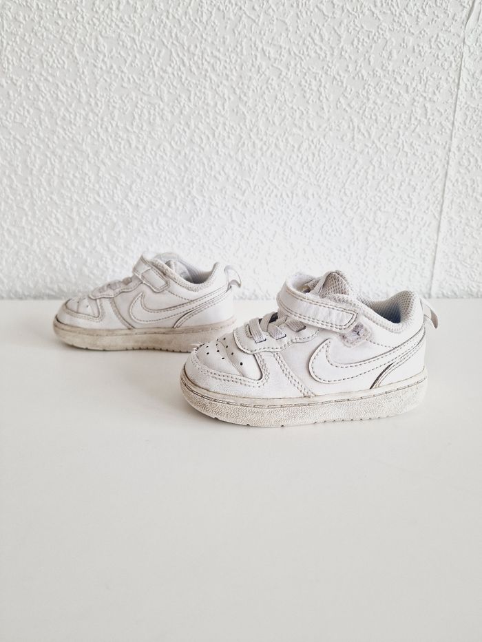 Tous mes articles Nike : #nikesev Toutes mes chaussures : #chaussuresssev Toutes mes baskets : #basketsev Toutes mes chaussures en 22 : #22sev Baskets à scratch et lacets élastiqués Marque : NIKE Modèle : Court Borough Couleur : blanc Pointure : 22 État : bon état Retrait sur place ou envoi.